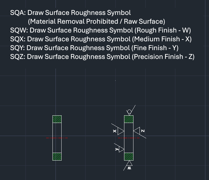 This tool allows you to quickly draw surface roughness symbols (A, W, X, Y, Z) in mechanical drawings.