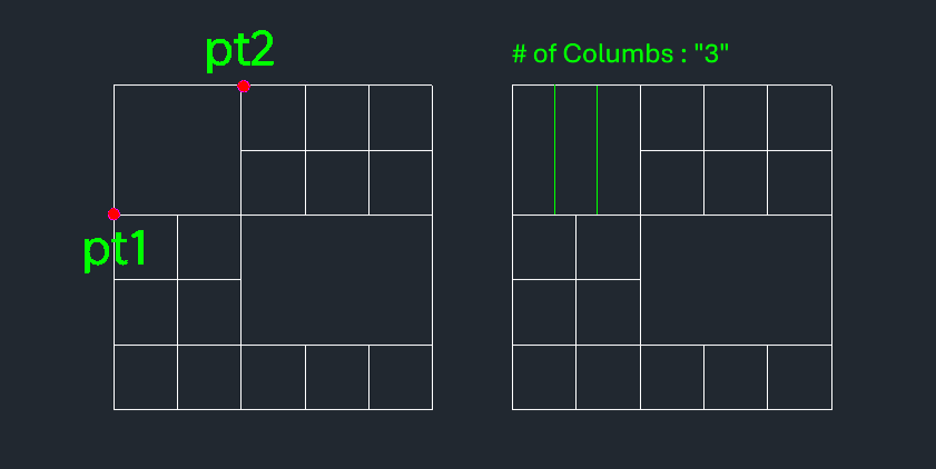 • Input: Requires selecting the left and right points (PT1, PT2) of the area to be divided.