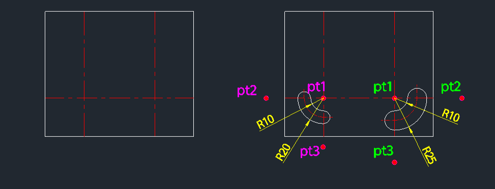 This tool creates a rounded slot shape (like a peanut or elongated hole) based on three points and two radius values.