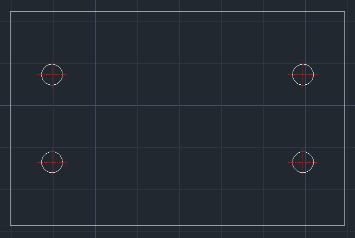 This tool automatically draws 4 circles (holes) inside a rectangle, one near each corner, with precise offsets.